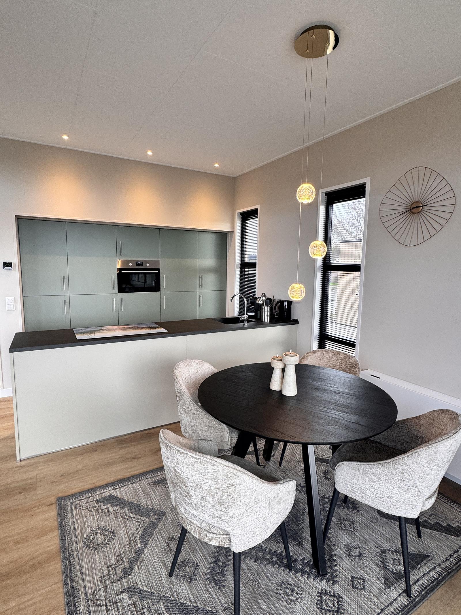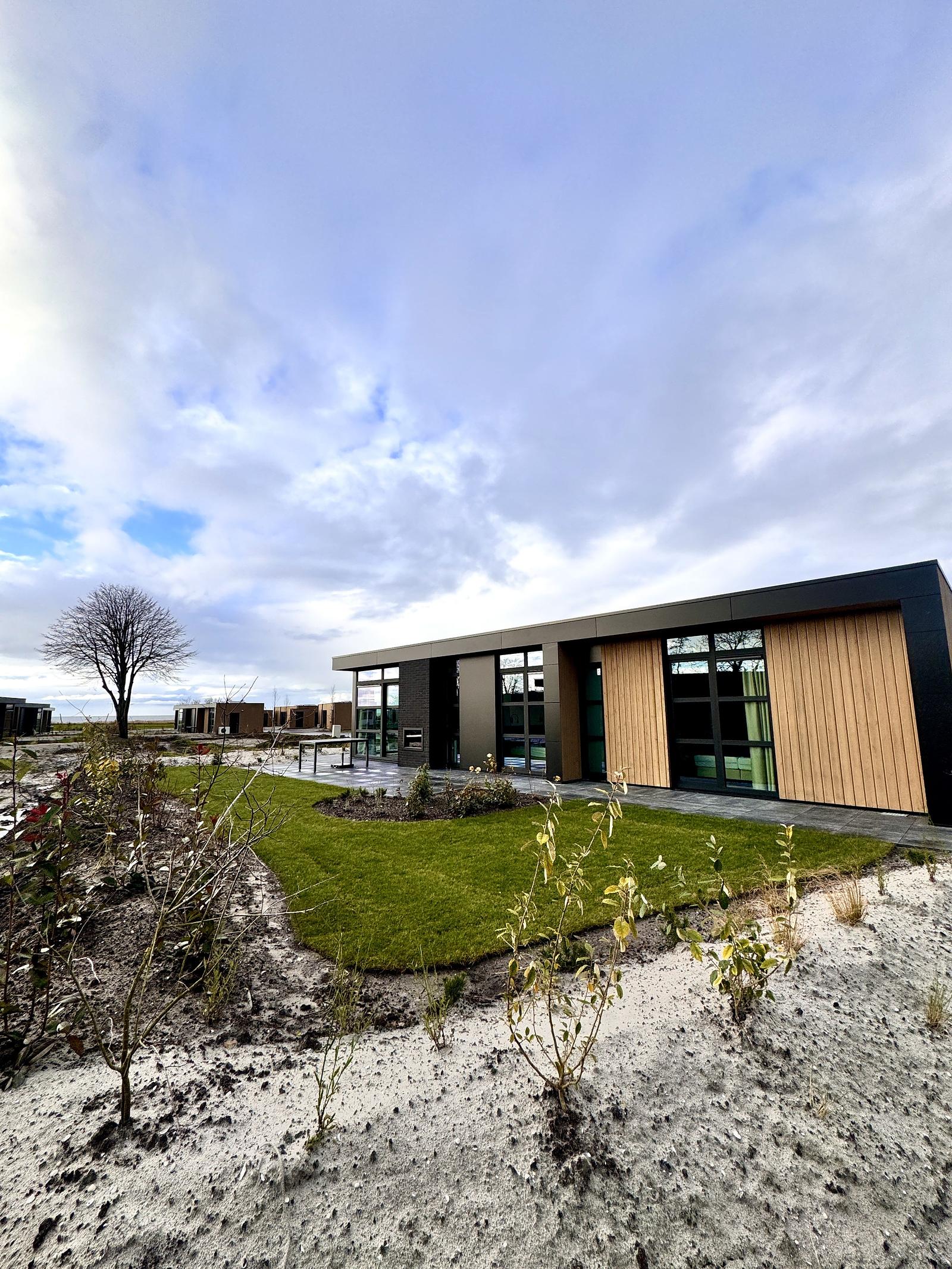 The recreation house has a spacious living room luxuriously furnished with TV, dining room and kitchen. The luxury kitchen is equipped with an induction hob with built-in extractor fan, combi-oven and dishwasher. Two bedrooms have 2 x single box-spring beds, a TV and ample storage space. The 2 luxurious, spacious ensuite bathrooms have a sink and a walk-in rain shower. The house has a separate toilet. If desired, the recreational homes can be delivered fully furnished. During the purchase process it is possible to configure the house completely to your wishes in cooperation with the builder.